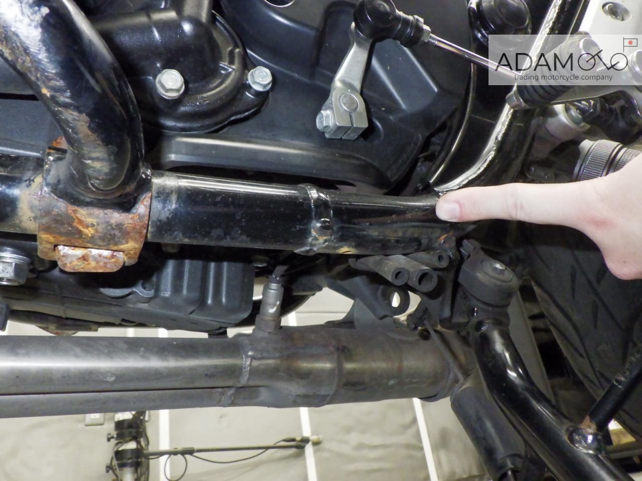 メーター交換車。シール距離交換前17287㎞、後0㎞。ETC付き。前足回りねじれ。エンジンガード付きキズ大。各所キズ、サビ。 |